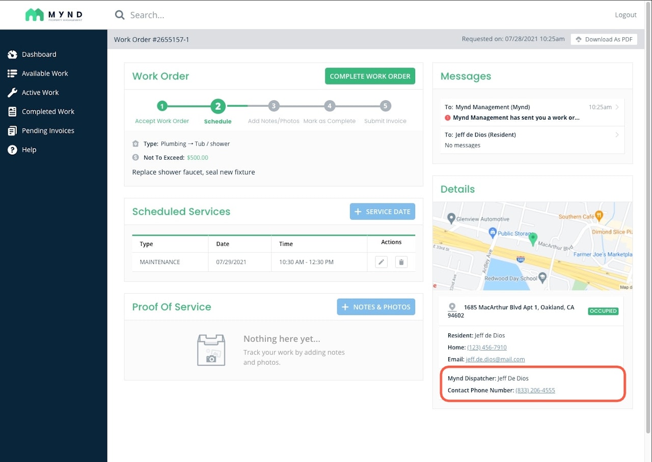 If you’ve received a work order, you can contact the maintenance coordinator who dispatched you by calling the phone number listed on the work order itself. You may also email vendors@mynd.co or call 833-206-4555 at any time.